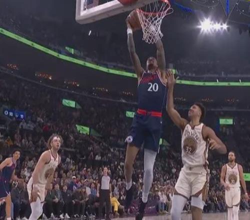 篮下双手暴扣炸筐。